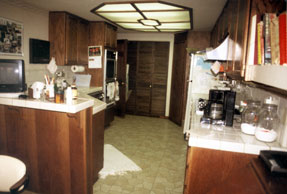 Maple cabinets combine with blue-pearl granite to create an elegant background for the antique plates and crystal. In order to have additional storage and also a place to display family treasures, this kitchen remodel included the addition of a new cabinet (seen to the right of the original kitchen) with halogen lighting. |