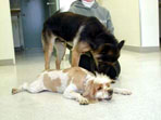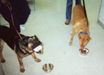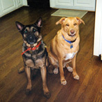 Dr. Jones is bringing Uno his "Happy Adoption" cake.  Here he's scoffing it down with his new mate, Max.  May they have many happy play days together.